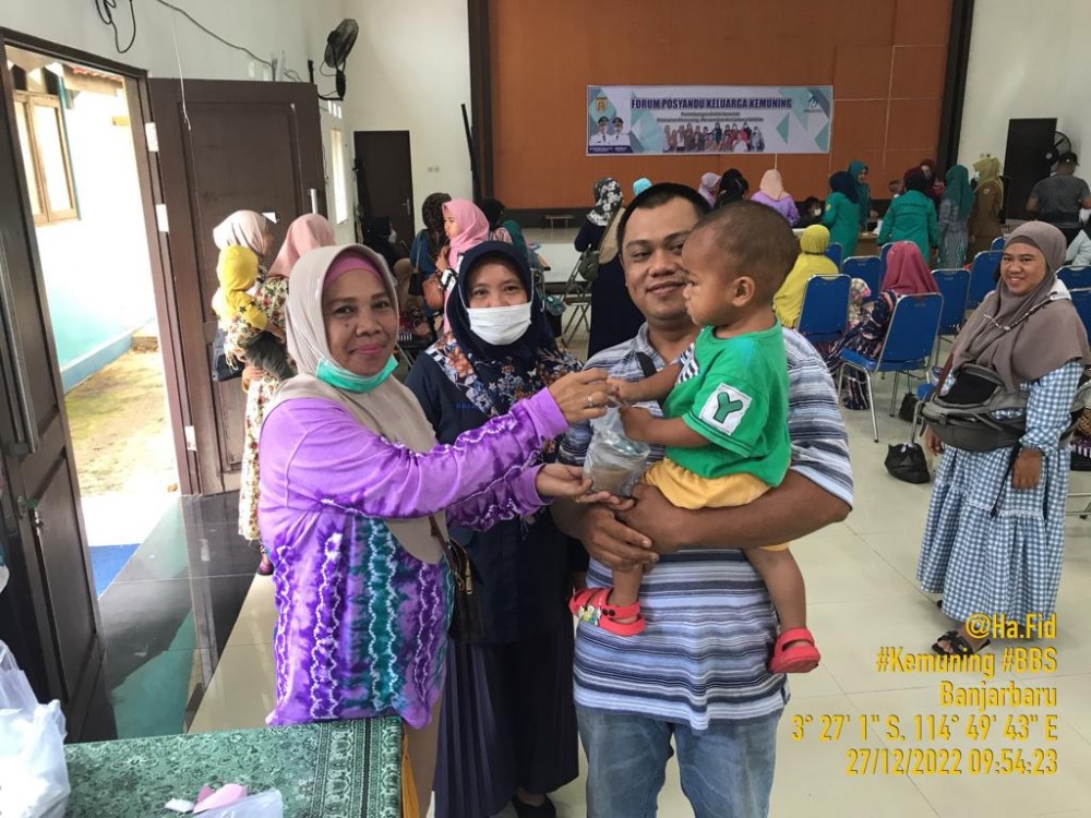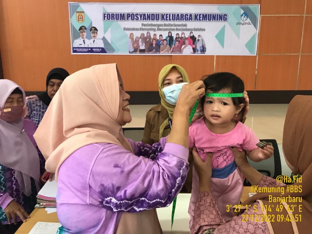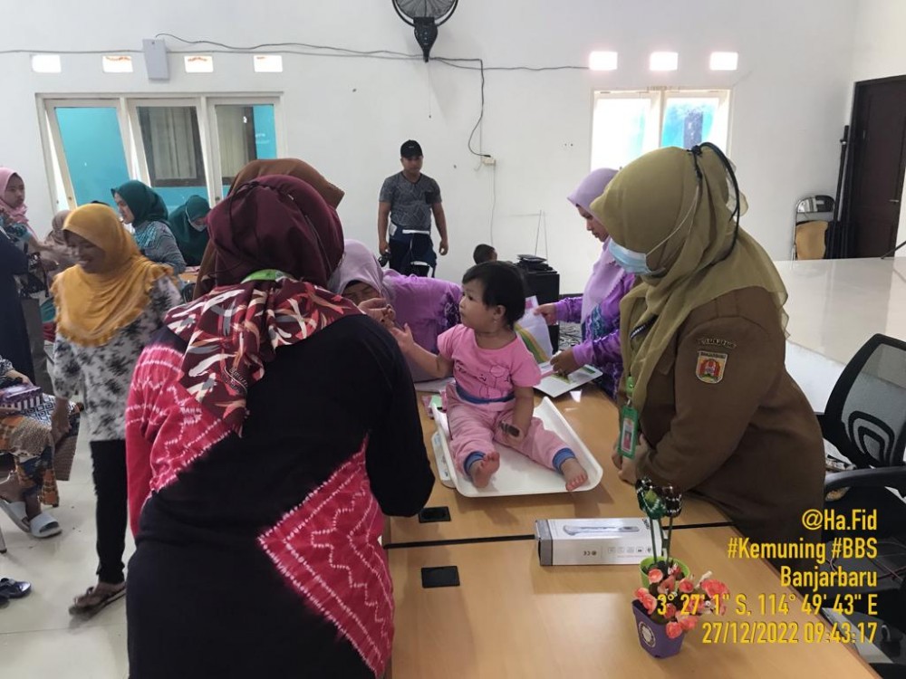 KIMKEMUNINGMANDIRI/MEDCENBJB – Kelurahan Kemuning bekerjasama dengan Puskesmas Banjarbaru Selatan melalui pembentukan Forum Posyandu Keluarga Kemuning turut peran serta dalam menyukseskan "Program Basingsing" yang diluncurkan oleh Pemerintah Kota Banjarbaru, mengadakan Kegiatan Penimbangan Balita Serentak, pada (27/12/2022) Selasa pagi.
