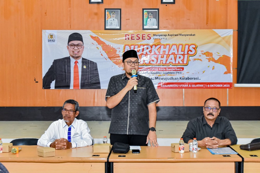 KIM Kemuning Mandiri – Legislator Muda Banjarbaru, Nurkhalis Anshari, bersemuka dengan elemen masyarakat pada kegiatan reses di Aula Kelurahan Kemuning, Senin (6/10/2025).
